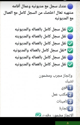 السلام عليكم ورحمة الله وبركاته خدمات عامه انجاز كافة انواع الخدمات موجودة ارسل وازهل وابشر وتم وازهلها انجاز كافة المعاملات جوازات اقامات كل شيء واتس اب 0594587591